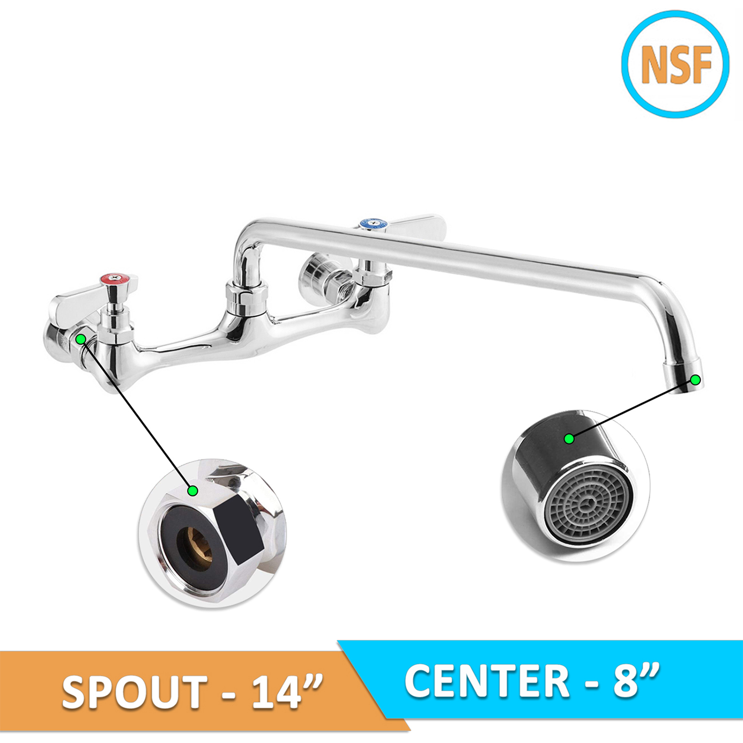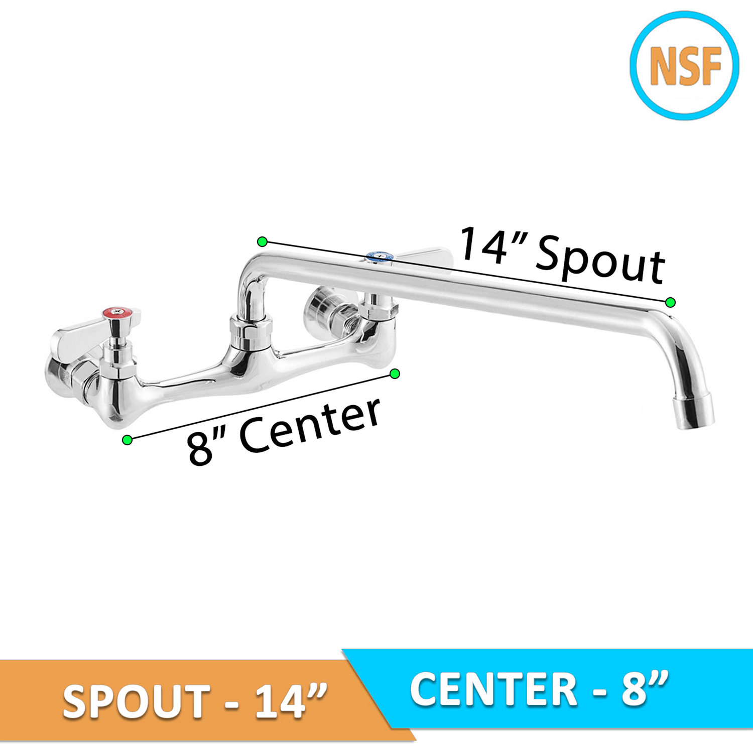 Whether you are outfitting a restaurant kitchen, a food preparation area, a laboratory, or any other professional workspace, the Wall Mount Faucet with a 14″ Swing Spout, 8″ Centers, and Lever Handles is a reliable and stylish choice. Invest in this qualty faucet to experience the perfect blend of performance, durability, and aesthetics, elevating the standards of your professional environment.