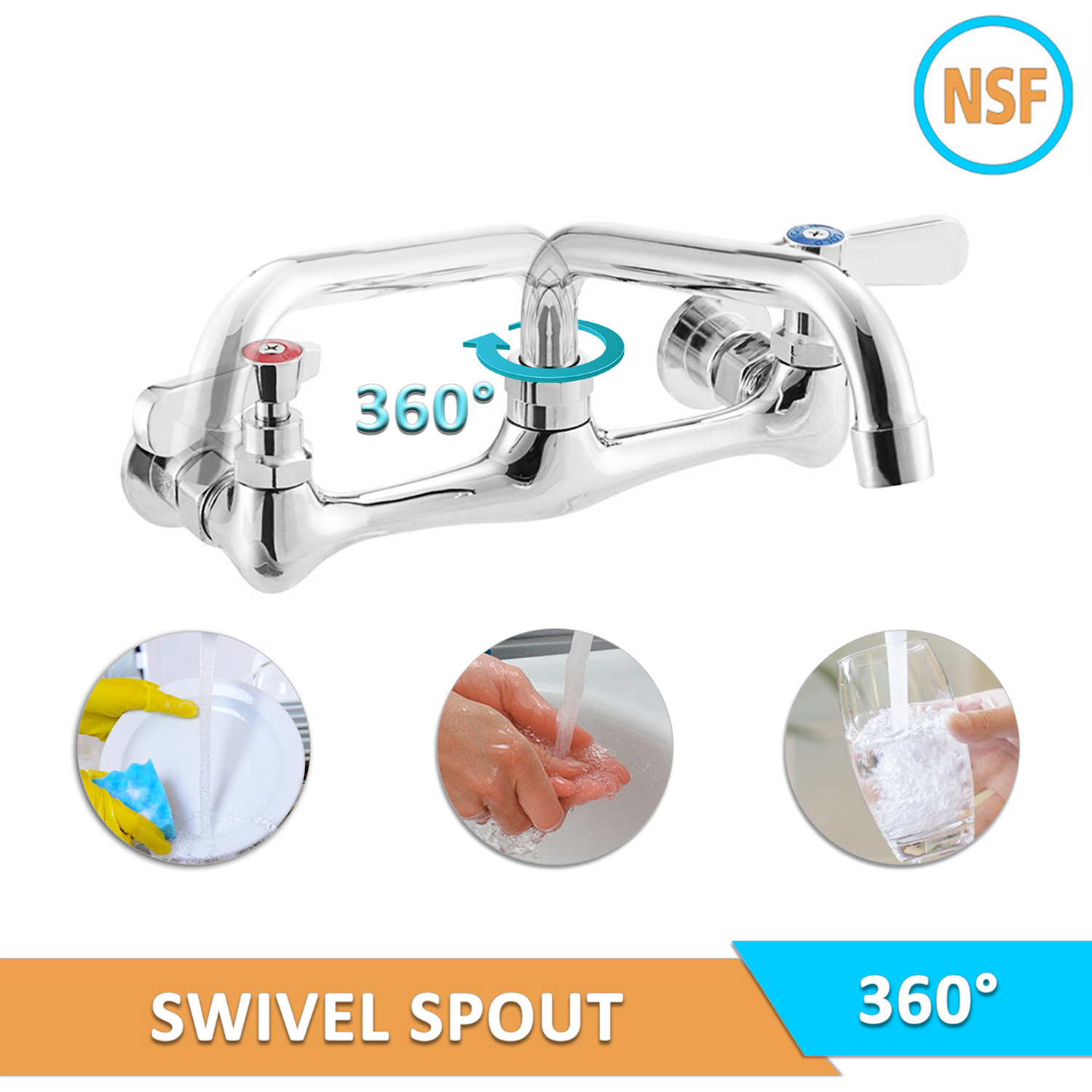 Introducing the Wall Mount Faucet with a 6″ Swing Spout, 8″ Centers, and Lever Handles, a premium solution designed to elevate the efficiency and functionality of any commercial kitchen, laboratory, or workspace. This faucet is expertly crafted to deliver exceptional performance, combining durability, flexibility, and user-friendly design.